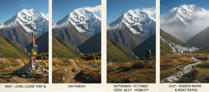 Planning Om Parvat Yatra? Learn about the ideal months, weather conditions, and travel tips for a safe experience.